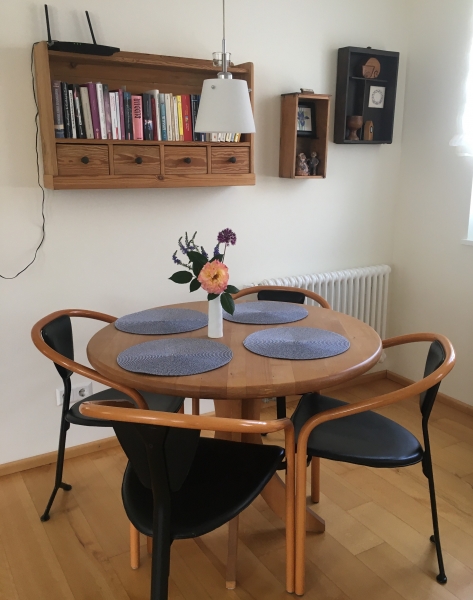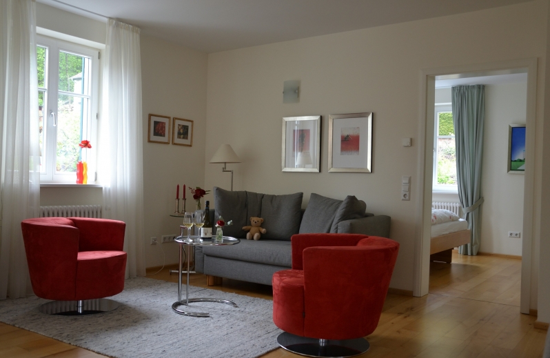 Helle, freundliche 4-Sterne Wohnung im 1. OG mit Westbalkon für 2 Personen (Doppelbett 180 cm) mit großer Wohnküche, Schlafzimmer, großzügigem Bad mit Dusche/WC und Garderobenraum.