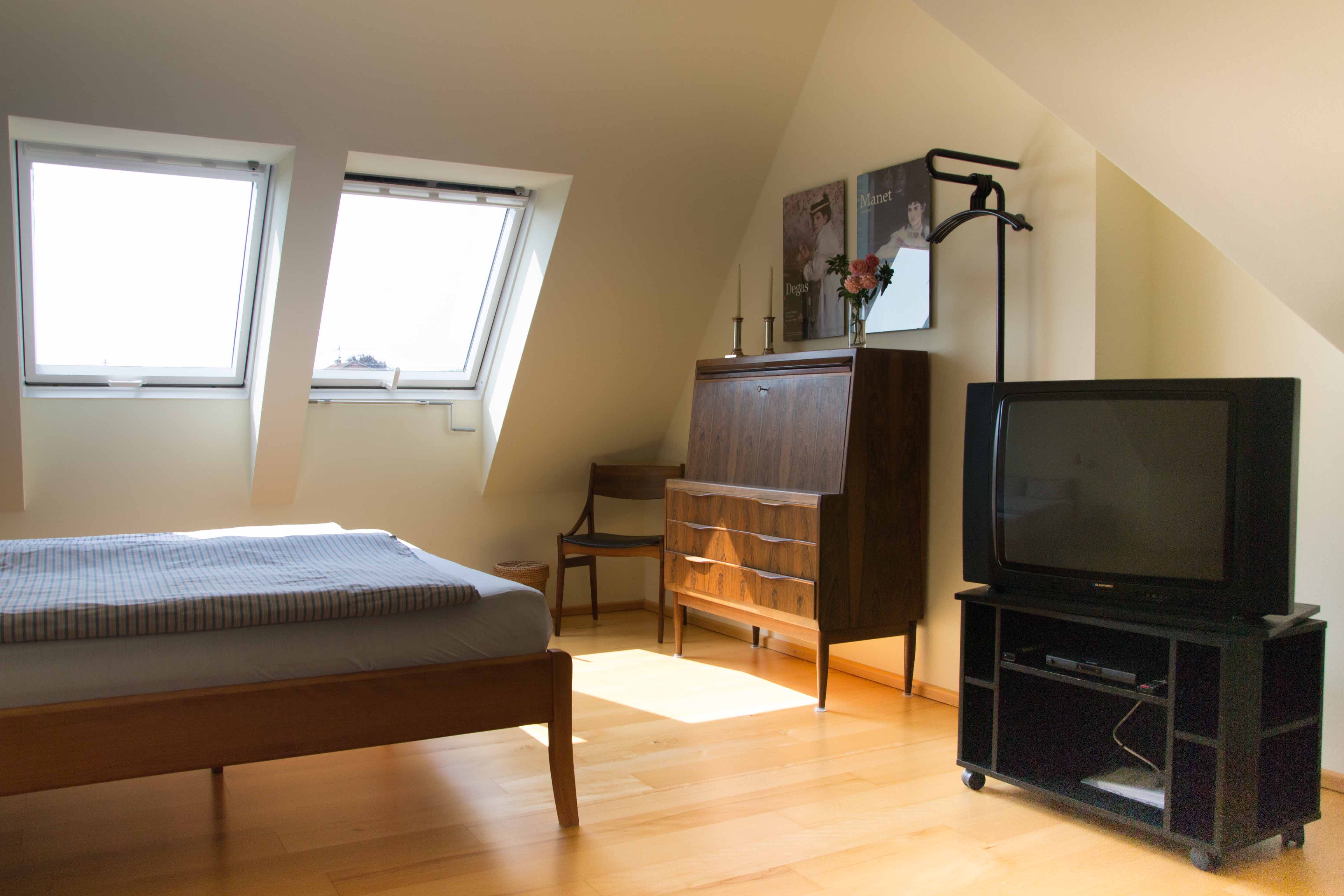 Ein separates gemütliches Zimmer unter dem Dach für zwei Personen, das zur Ferienwohnung 2 gehört (bei Belegung mit drei oder vier Personen) gehört, aber auf Anfrage auch zur Ferienwohnung 1 angemietet werden kann.